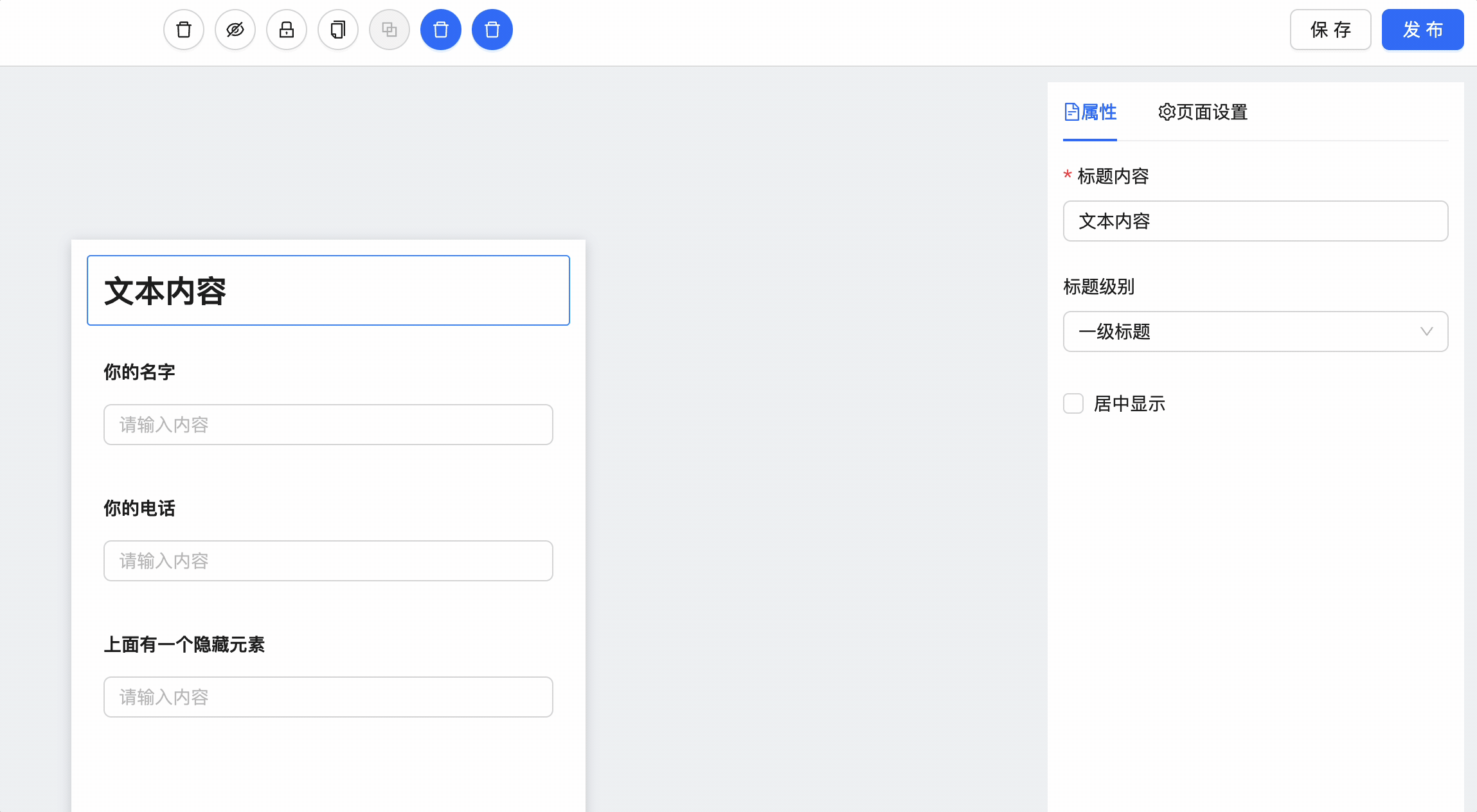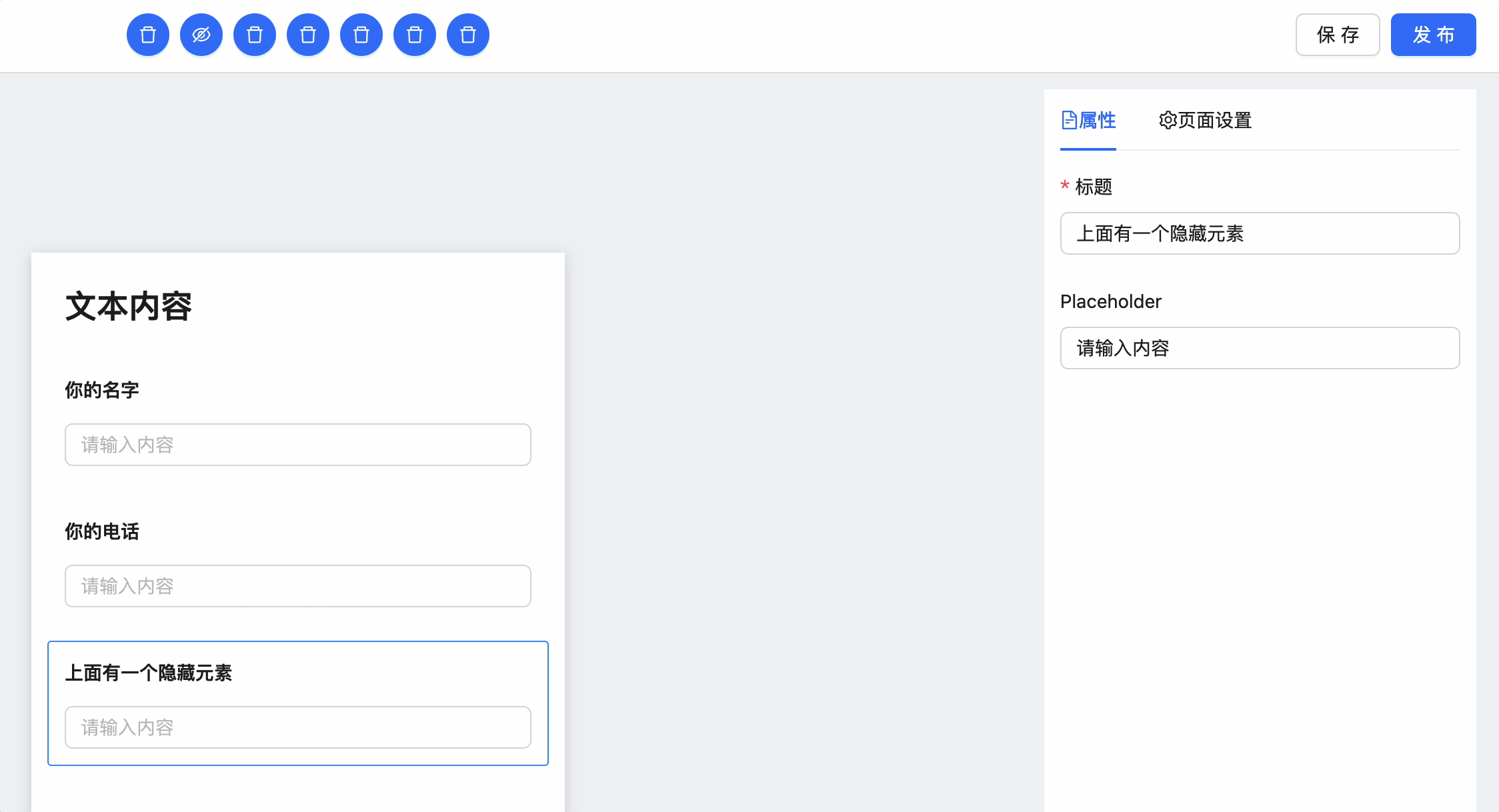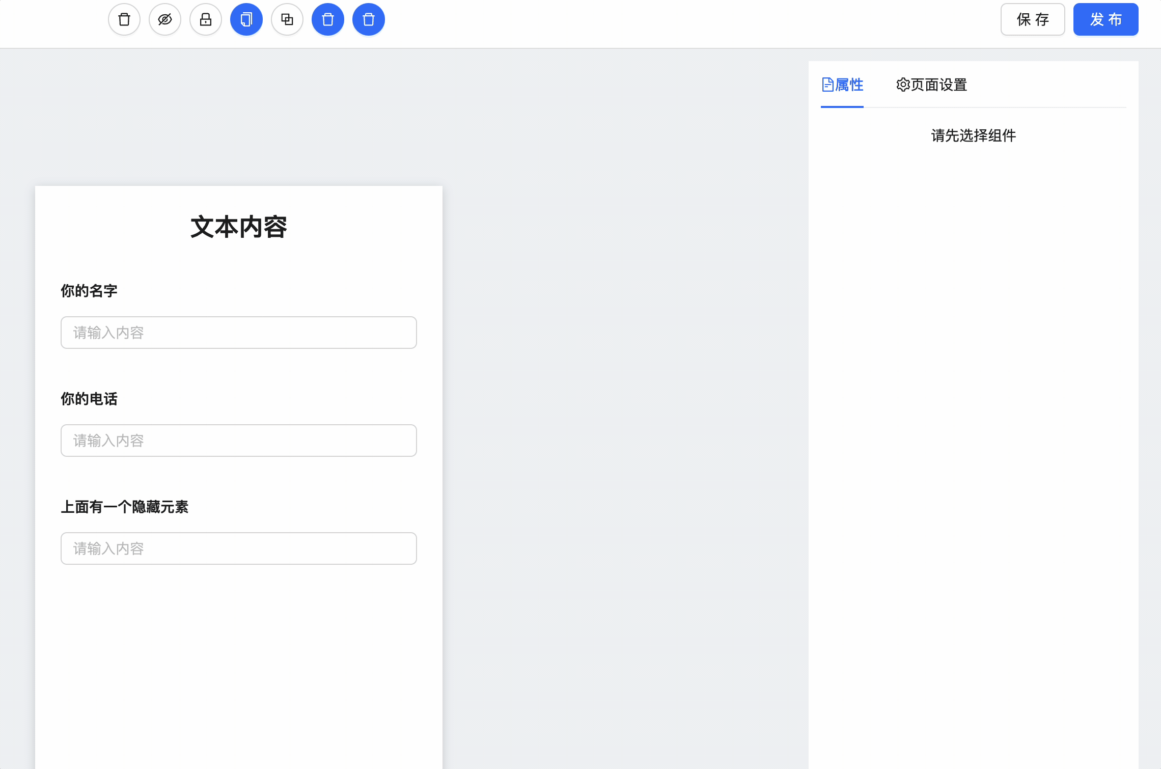 用于修改 isHidden,从而实现 表现/隐蔽功能。不外,记得页面的 componentList 必要过滤掉隐蔽的信息,而且在处置处罚组件对应属性面板的时间,也得先过滤掉隐蔽的信息,再做选中下个组件逻辑。