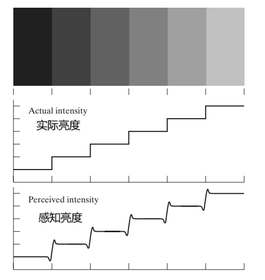 征象:在匀称亮度地区边界处感知到卖弄的亮/暗带(图1)。