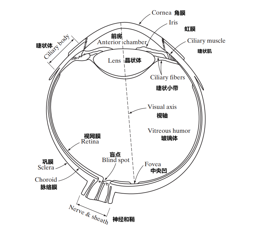 中层: 虹膜(调治瞳孔巨细控制进光量)、睫状体(调治晶状体曲率)和脉络膜(汲取散射光) 。