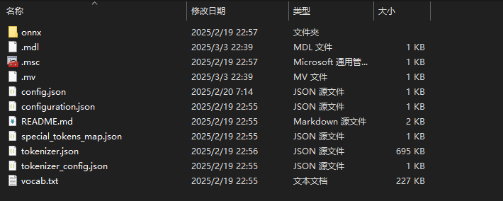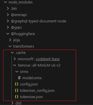 下载后,将这个目次中的内容复制到NodeJS 项目标node_modules 目次下的 node_modules@huggingface\transformers.cache 目次下, 这也是Hugging Face下载模子文件的目次,结构如下图: