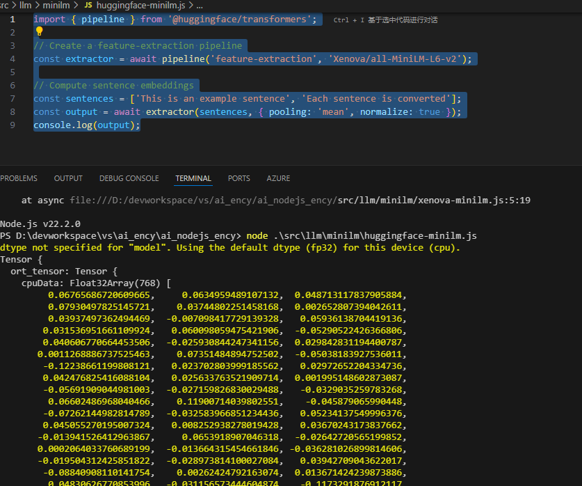 - PS D:\devworkspace\vs\ai_ency\ai_nodejs_ency> node .\src\llm\minilm\huggingface-minilm.js
