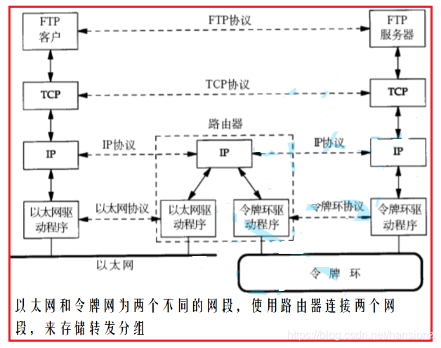 跨网段的主机通讯,数据从一台盘算机到另一台盘算机传输过程中要颠末一个或多个路由器,颠末路由器的存储转发,才可以到另一个网段下的主机。