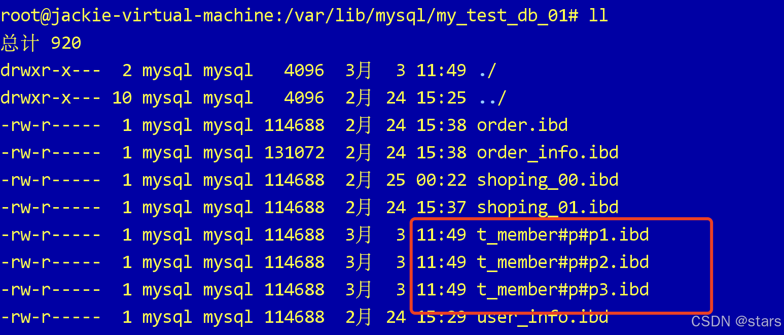 这是/home/jackie目次的数据文件。其他的寻常sql操纵就不演示了,沉寂凡表的操纵千篇同等。假如要在分区后继续新增分区、删除分区、归并分区各人可以看看mysql的文档,这里就不啰嗦了。