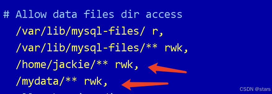 apparmor是linux的一个安全组件,有爱好各人去查查。咱们修改apparmor的设置:- sudo vim /etc/apparmor.d/usr.bin.mysqld