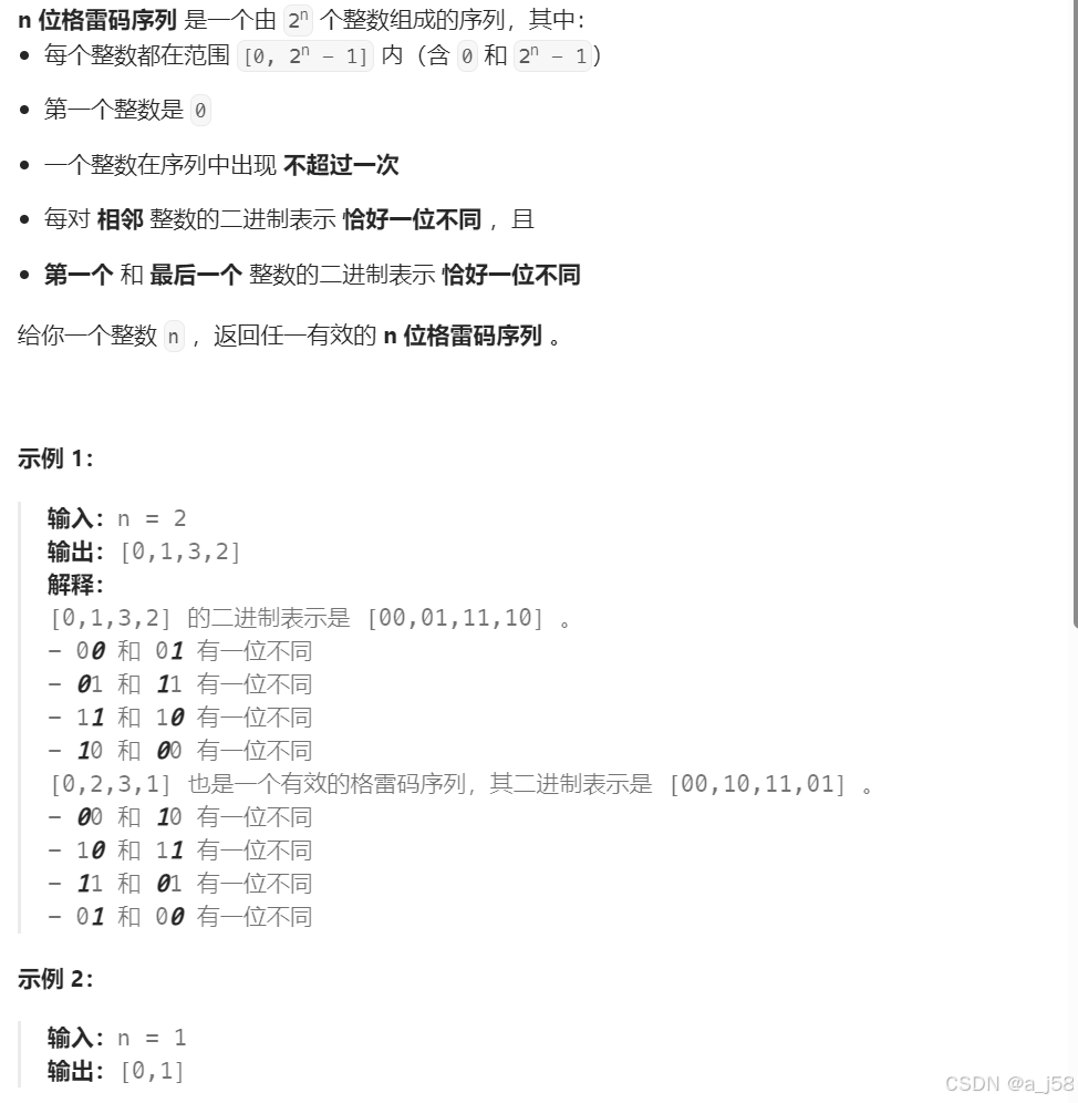 for(int i=1;i<=n;i++) 这个是用来逐位构造格雷码的,对于n=1,只会循环一次