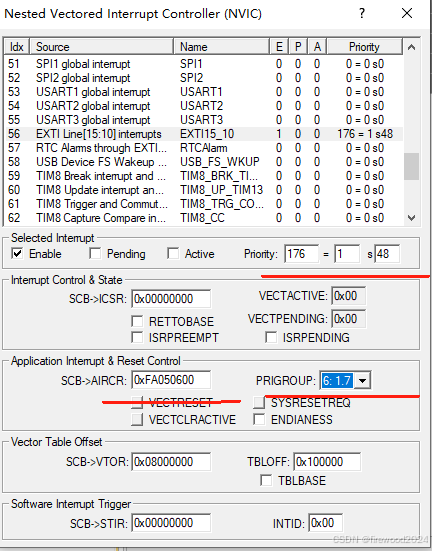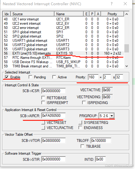 - 通过IMR使能克制哀求,并设置NVIC优先级。
