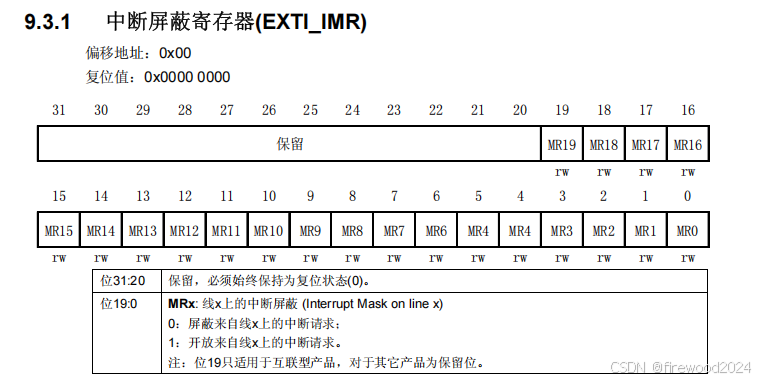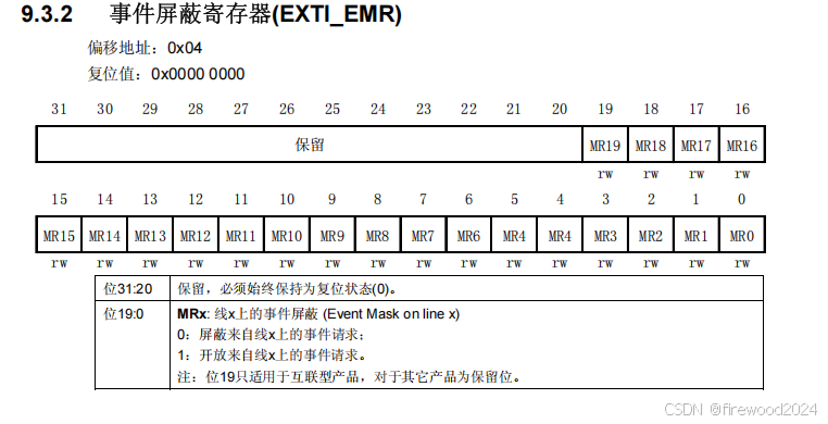 默认是全屏蔽的即复位值是0x0000 0000. EMR(Event Mask Interrupt)