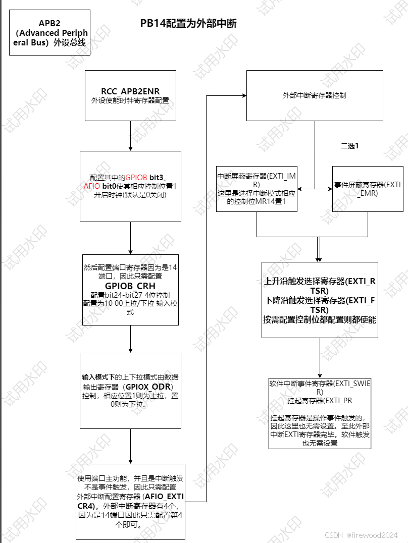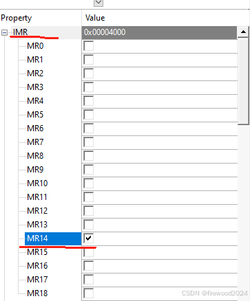 ● 设置 20个克制线的屏蔽位(EXTI_IMR) IMR( Interrupt Mask Register ) - EXIT_InitStructure.EXTI_Line = EXTI_Line14 ;