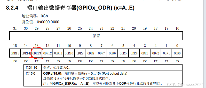 GPIOC->CRH = 0x0030 0000;固然这个写法是不太对,别的位我们都赋值为0了,