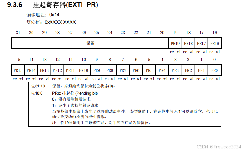 PR(Pull Reques),挂起寄存器是操纵变乱触发的,当外部克制触发后,须要软件清0.即EXTI_ClearITPendingBit(EXTI_Linex);