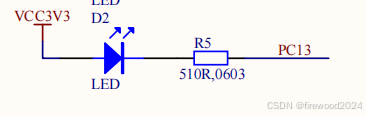 - GPIO_ResetBits(GPIOC,GPIO_Pin_13); //端口设置为0