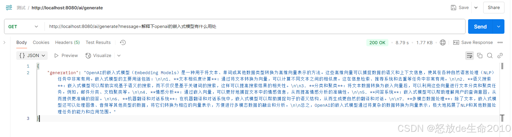 创建一个ChatController类,使用AzureOpenAiChatModel与OpenAI API举行交互。提供两个接口:一个是同步天生消息的接口(/ai/generate),另一个是流式天生消息的接口(/ai/generateStream)。