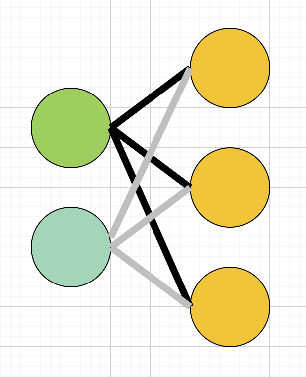 权重参数的总数量为: 权重参数=第一层神经元数量×第二层神经元数量=2×3=6