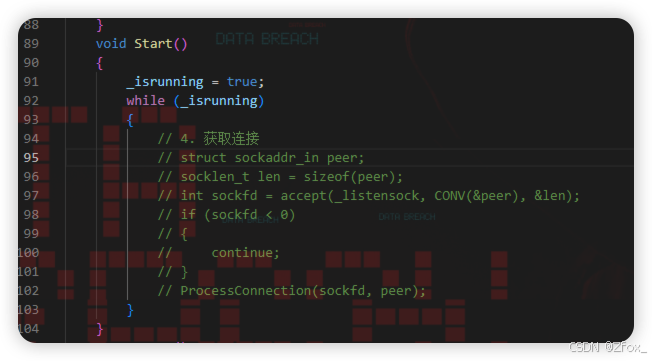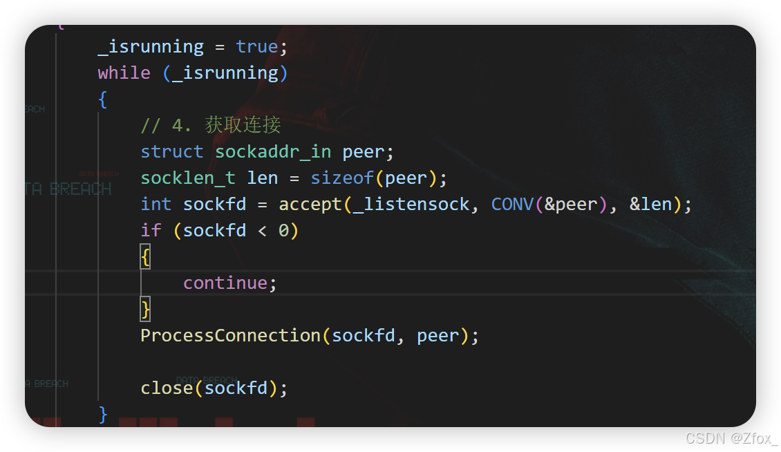 🌿 这里我们将 TcpServer.cpp 的 accept 代码表明掉