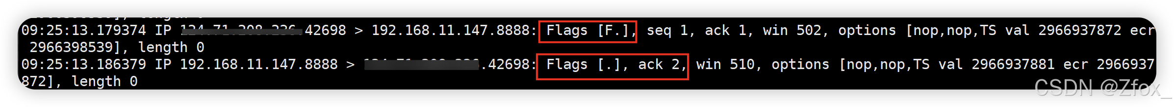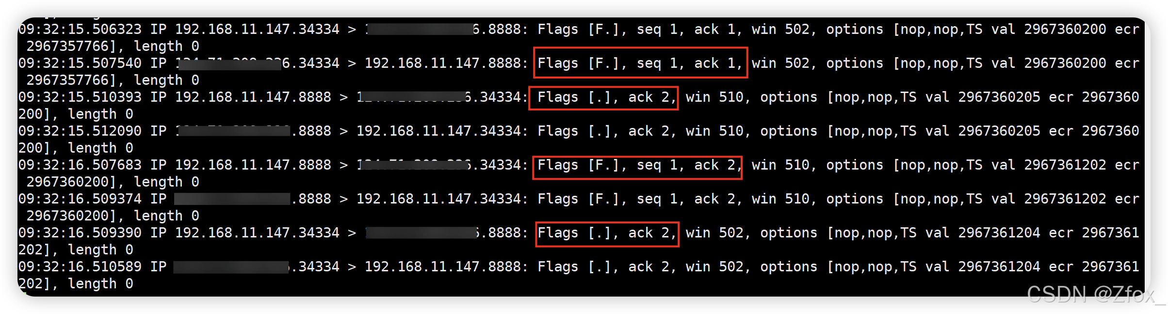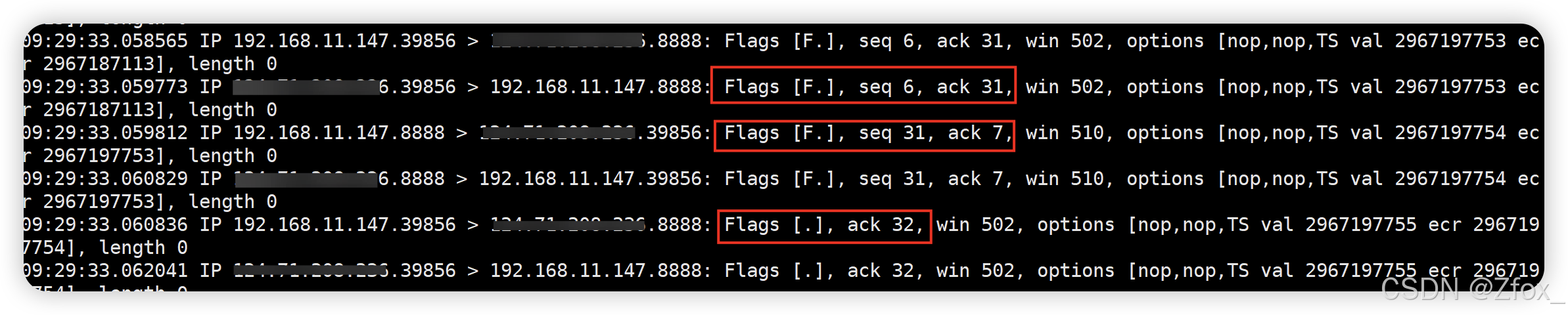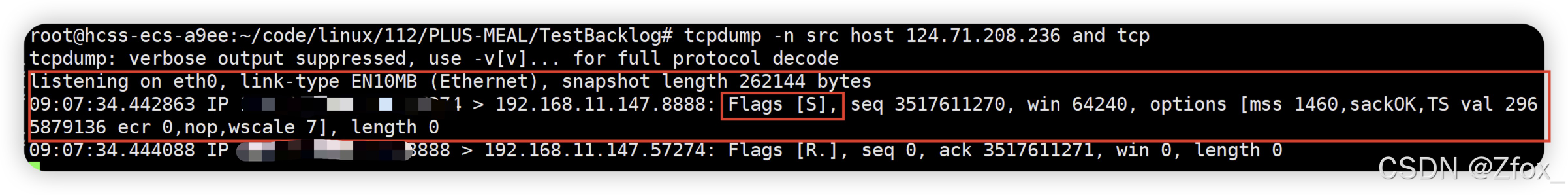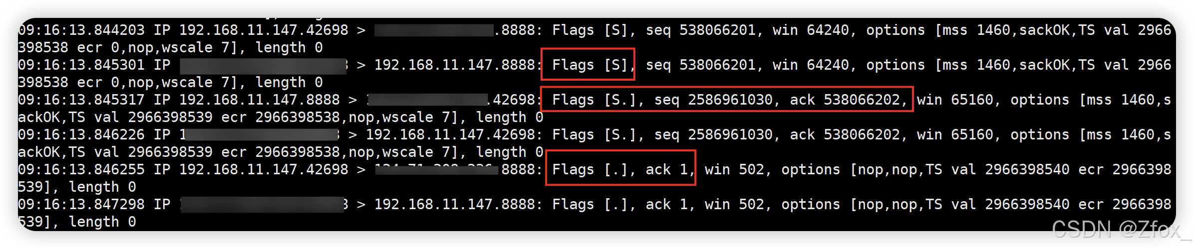 此时我们就抓取到了 Flags 为 S 的 SYN 报文