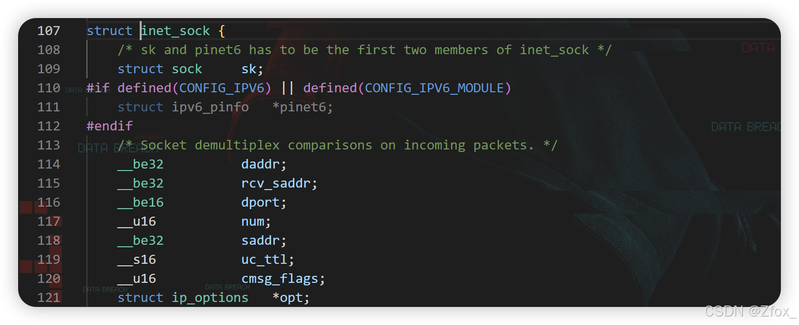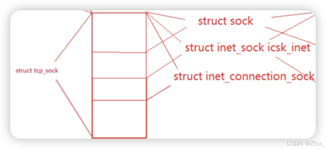 - 通过逼迫范例转换 这个指针可以直接指向 struct sock 、struct inet_sock 、 struct ine_connection_sock 访问对应的数据