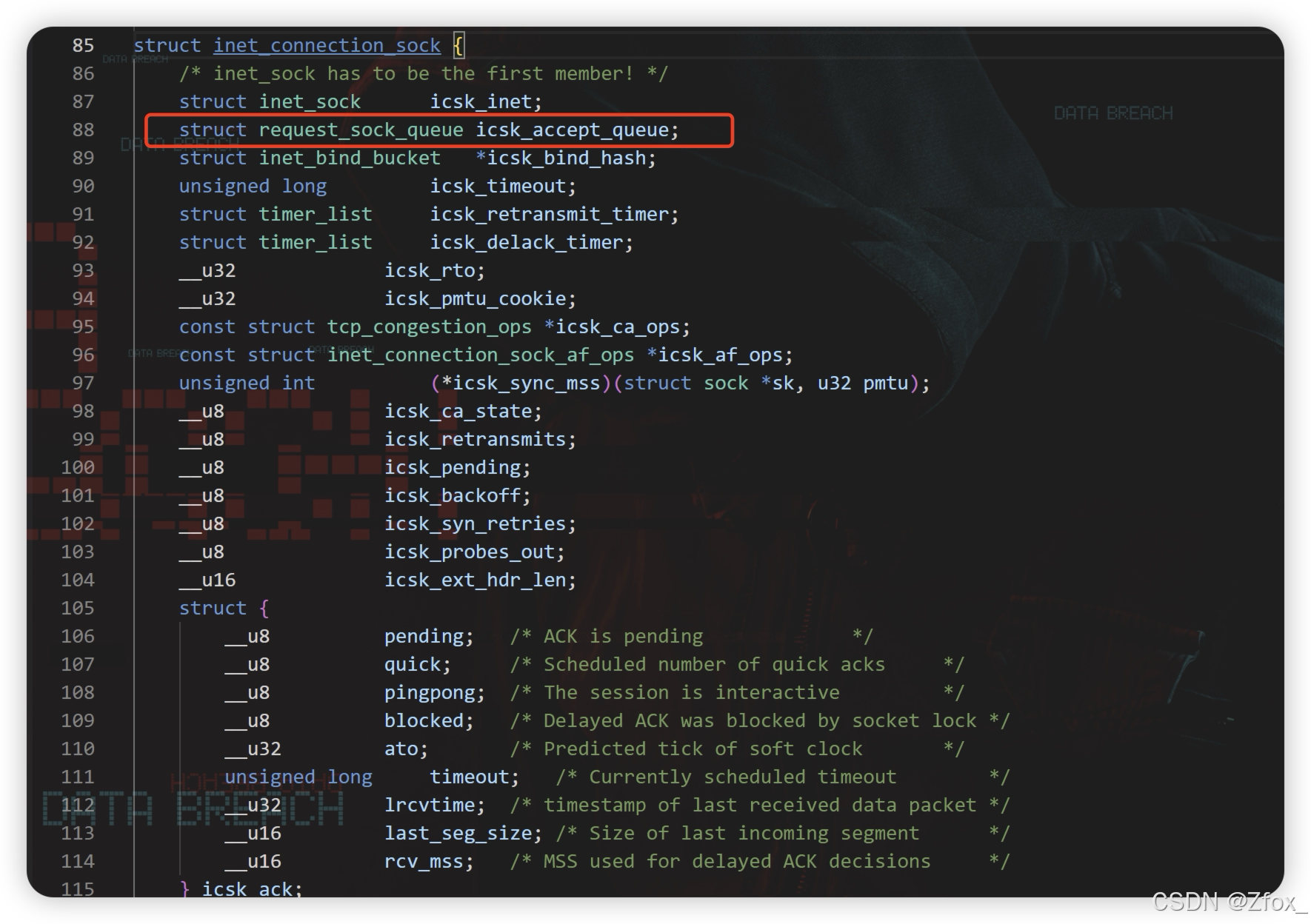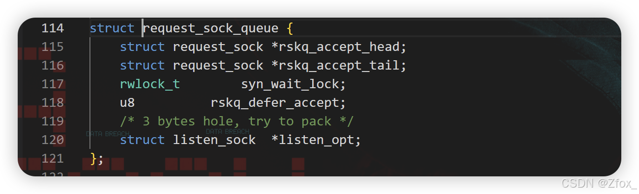 🛜 这是 TCP 套接字,此中包罗了慢启动算法阈值,拥塞窗口巨细,关联进程… 一系列 TCP 协议中的对应字段!这个 tcp_sock 就是三次握手时间创建的布局体!此中的第一个成员 struct inet_connection_sock 是复制毗连属性的! 这里就包罗毗连的相干信息。全毗连队列就在这个布局体中!