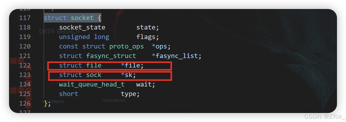 🦈 可以看到 struct socket 布局体内部有一个 struct file 布局体,但是未来我们是想通过文件形貌符找到对应的套接字,然后举行读取数据。但是现在是 struct socket 布局体内部有一个 struct file 布局体,如果通过 struct file 布局体找到套接字呢?