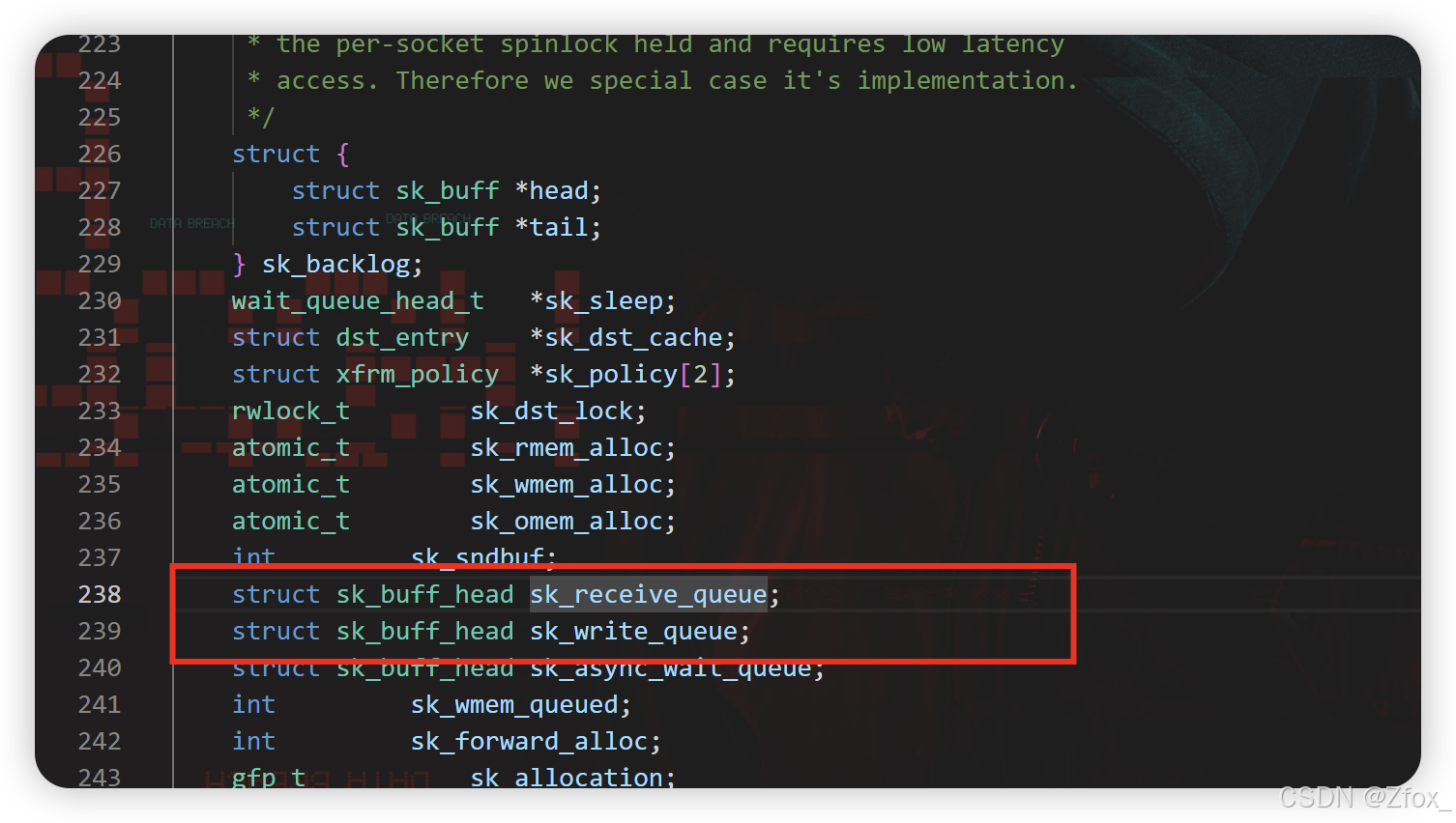 🏡 struct inet_sock 布局体此中包罗了 目的端标语,源端标语,目的 IP 地点 和 源 IP 地点 等数据!更紧张的是此中第一个成员是 struct sock 布局体,内里包罗着报文的一些属性 。这是整个 tcp_sock 中最底层的布局体,此中有两个字段:吸收队列 和 发送队列