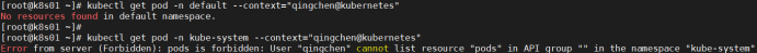 2、然后界说脚色绑定,将qingchen绑定至该脚色,然后qingchen就拥有了该脚色的权限,进而就能获取Pod信息