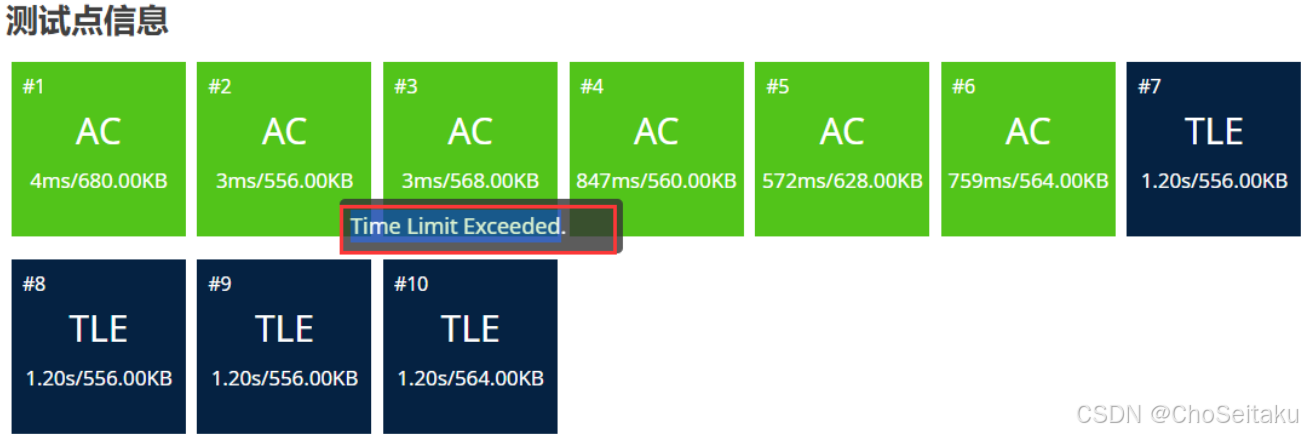 “Time Limit Exceeded”(TLE,超时)是⼀个在编程比赛和在线评测平台(如LeetCode、Codeforces、HackerRank等)中常⻅的错误信息。它意味着步伐在执⾏过程中凌驾了给定的最⼤运⾏时间限定,⽽未能在规定时间内得出效果。
