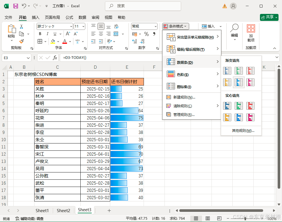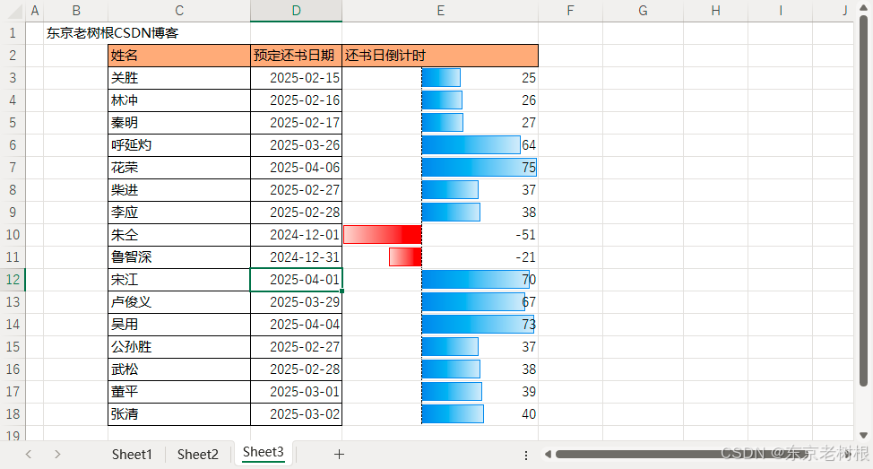 Excel 本事17 - 怎样盘算倒计时,并添加该倒计时的数据条(★)