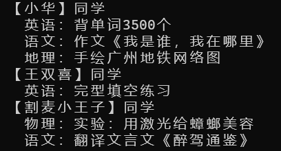 - Console.WriteLine("【{0}】同学", stu.Name);