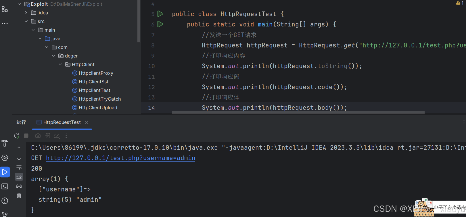 - HttpRequest httpRequest = HttpRequest.get("http://127.0.0.1/test1.php?username=admin");