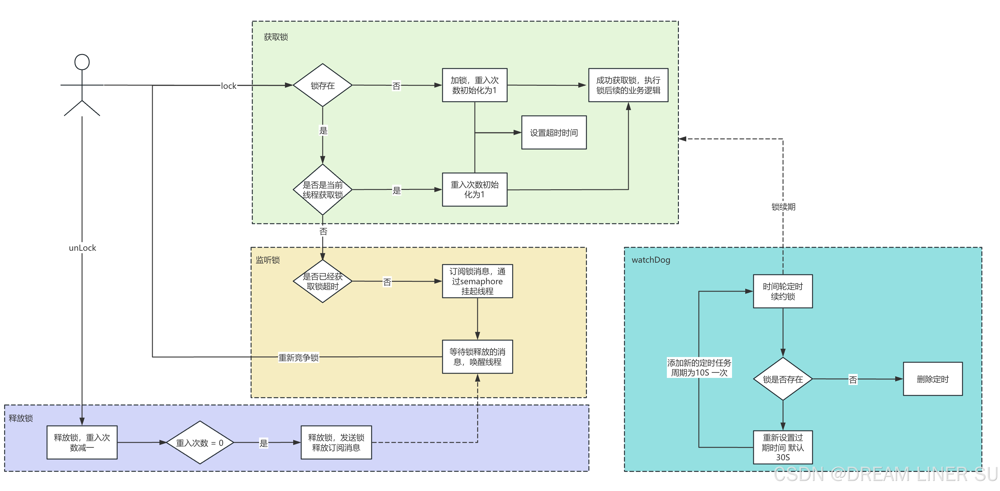 - 重入次数:纪录重入次数,再开释锁的时间,淘汰相应的次数
