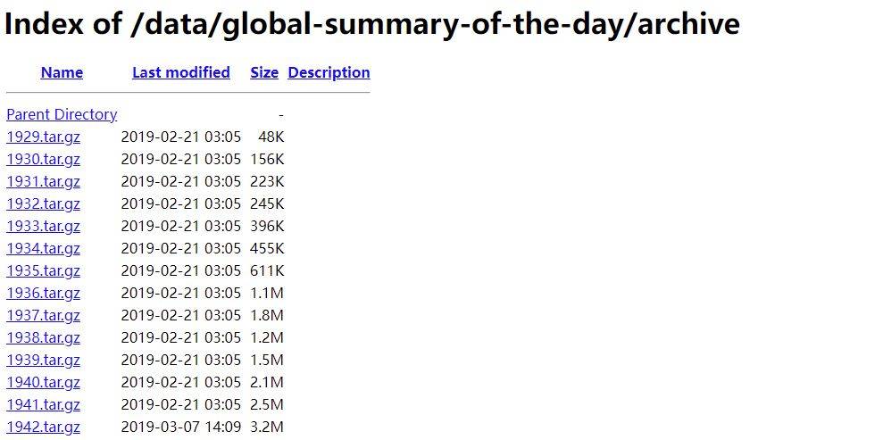 A)下设的国家情况信息中央(NCEI),网址为:https://www.ncei.noaa.gov/data/global-summary-of-the-day/archive/,包罗了1929—2024年的景象数据,各人可以本身去该网站下载原始数据!