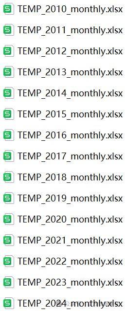 我们先来看一下Excel格式的数据,每个Excel文件中包罗有该年12个月每月的环球全部景象站点的均匀气温。