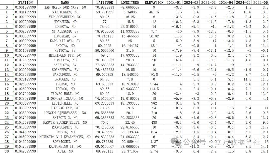 该数据的其他告急信息包罗数据坐标为GCS_WGS_1984,以2024年为例环球有12159个景象观测站点,具体的数据处理处罚方式会在下文具体先容!