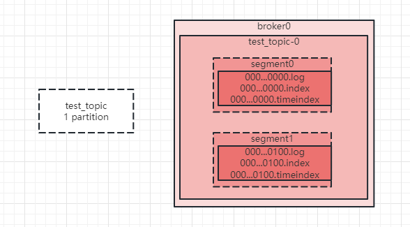 topic是一个逻辑概念,一个topic可以包含多个partition,partition才是物理概念,kafka将partition存储在broker磁盘上。如图,test_topic只有一个partition,那么在broker上就会一个test_topic-0的文件夹。在partition内部,kafka为方便管理和高效处理消息,进一步将消息的存储划分为多个segment,segment也是个逻辑概念,一个segment下主要包含:.log消息日志 文件,存储实际消息的地方,.index索引文件,.timeindex时间索引文件。segment是滚动的,当达到配置的大小或者时间,kafka就会重新创建一个新的segment,并且会在一定的时间后将过期的segment删除。