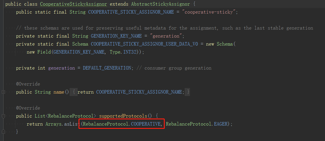 CooperativeStickAssignor重写了这个协议,使用cooperative,如图: