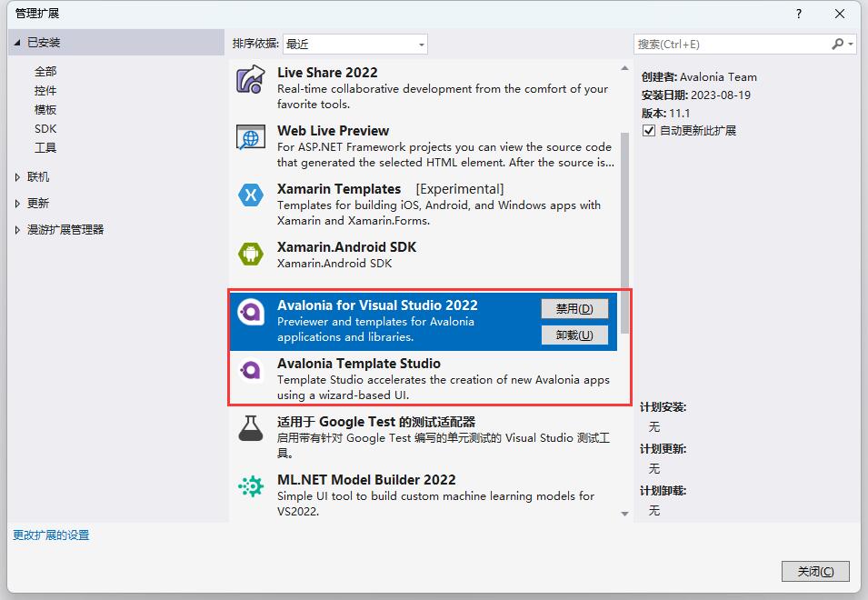 三、VS2022安装Avalonia开发插件