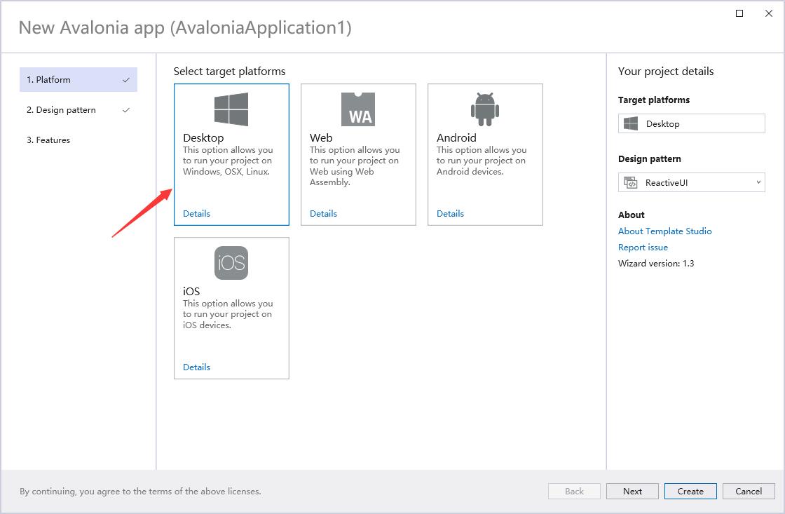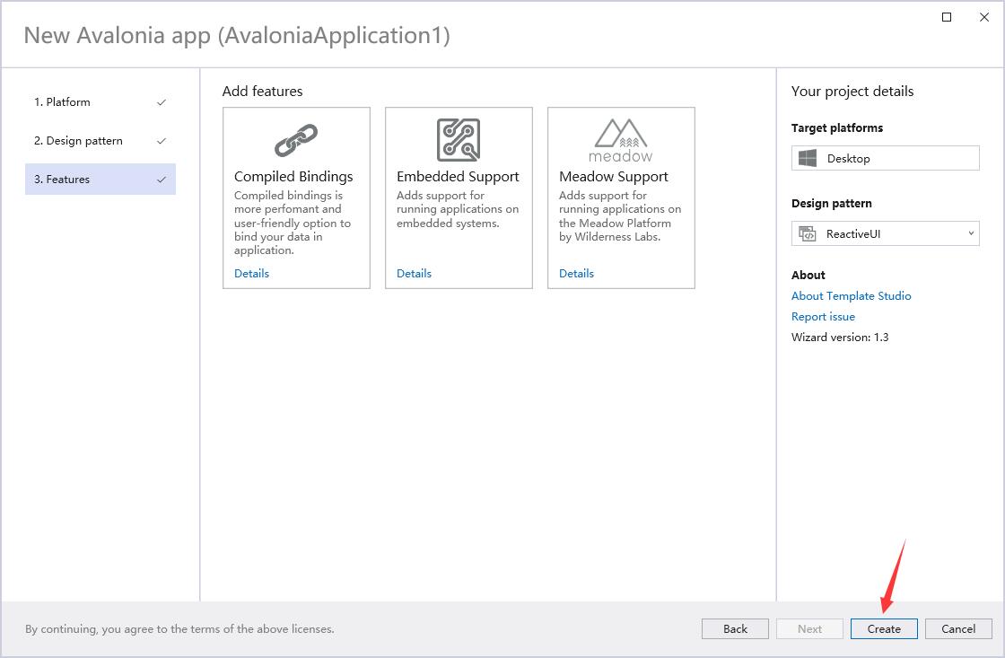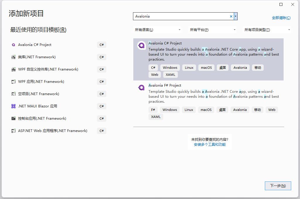 在安装完Avalonia插件和模板后,我们在创建新的项目的时候,可以直接搜索avalonia关键字,直接创建一个Avalonia C# Project,会有创建向导,按照向导提示一步一步创建完毕。