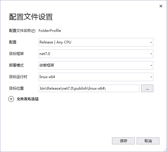 复制代码 点击顶部菜单的生成==>发布选定内容,目标运行时选linux-x64,然后发布项目。