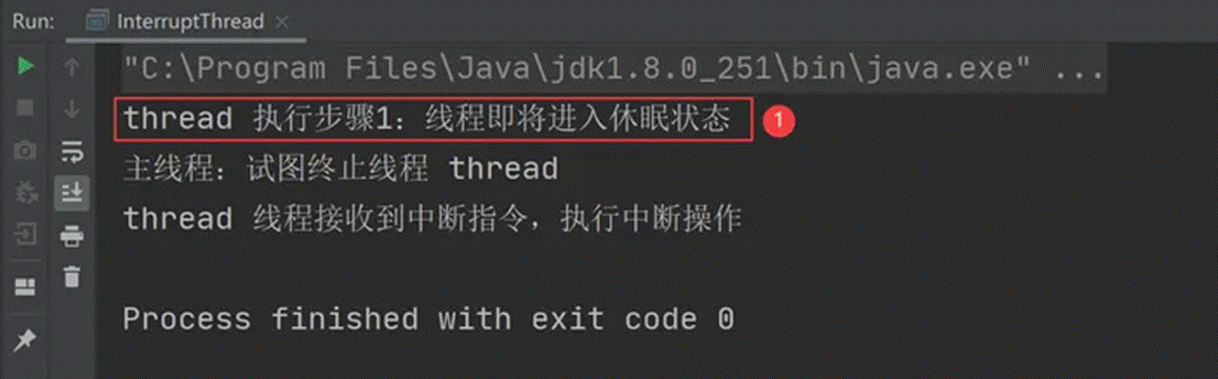 - System.out.println("thread 执行步骤1:线程即将进入休眠状态");
