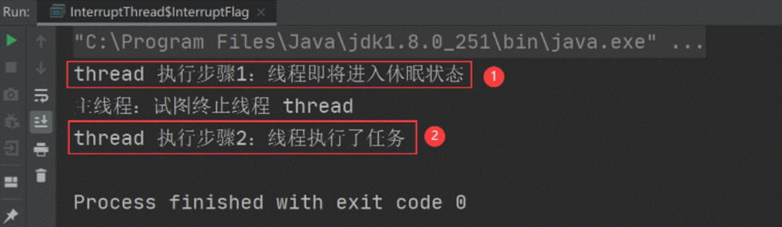 复制代码 输出:我们渴望的是:线程实验了步调 1 之后,收到停止线程的指令,然后就不要再实验步调 2 了,但从上述实验结果可以看出,利用自界说停止标识符是没办法实现我们预期的结果的,这就是自界说停止标识符,相应不敷及时的标题。
