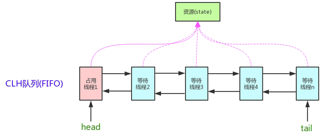 Craig、Landin and Hagersten队列,是单向链表,AQS中的队列是CLH变体的假造双向队列(FIFO),AQS是通过将每条哀求共享资源的线程封装成一个节点来实现锁的分配。