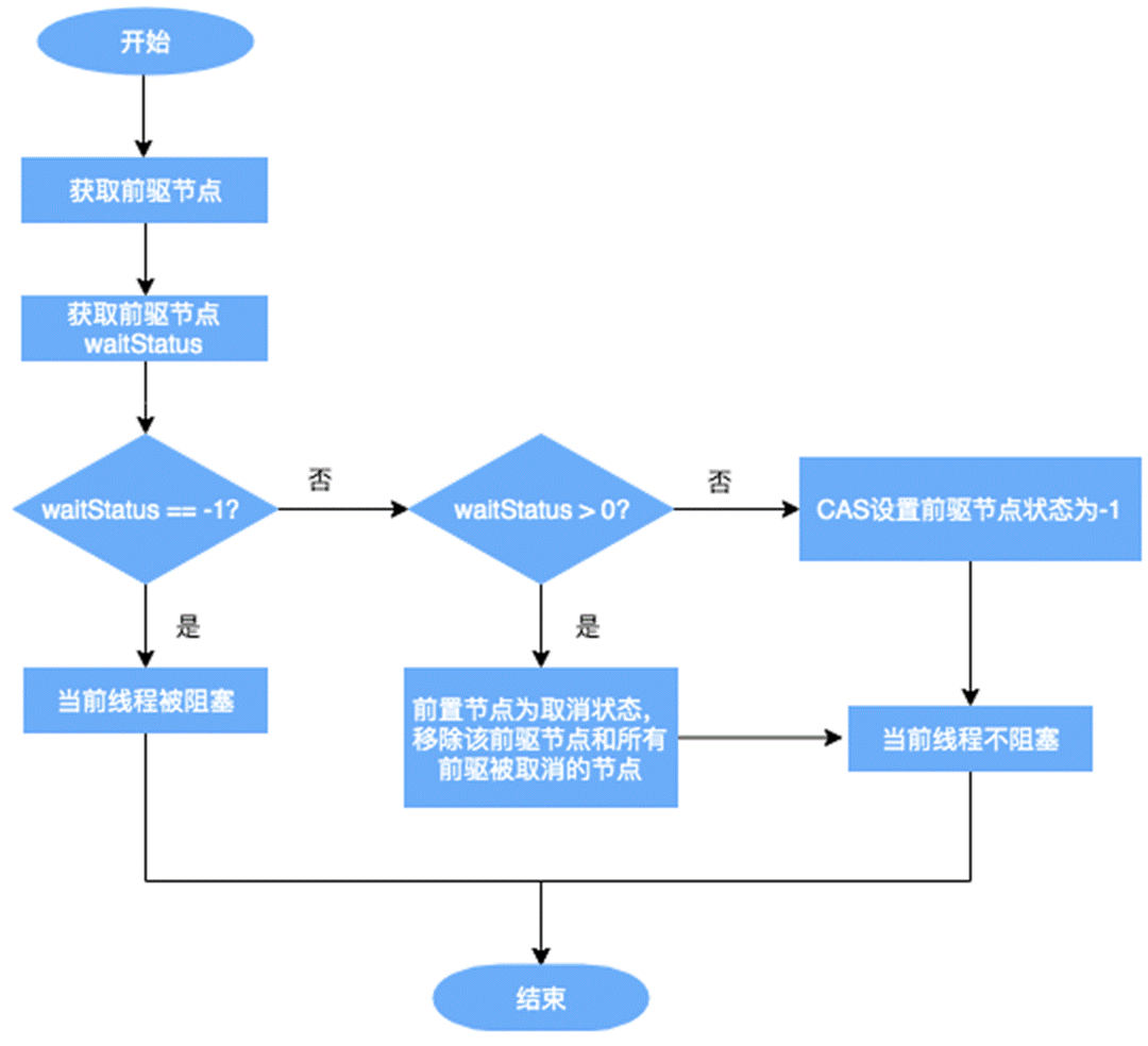复制代码 详细挂起流程用流程图体现如下(shouldParkAfterFailedAcquire流程):