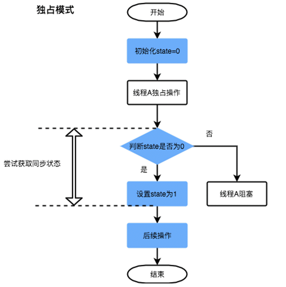 - 独占式:只有一个线程能实行,详细的 Java 实现有 ReentrantLock。