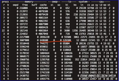 情况(vmstat 1),确定是页面缓存(cache项)占用量大,而且开释页面缓存后,从块装备读入数据量(bi项)会立刻增加,如果bi或bo长期不等于0,表示内存不足。