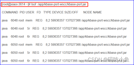 通过上述所获取到的被缓存最大的文件名称后,可以直接通过 lsof file_name 得到当前所开启该文件的所有进程信息;