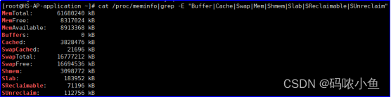 MemAvailable:可用的物理内存,MemFree+Buffers+Cached