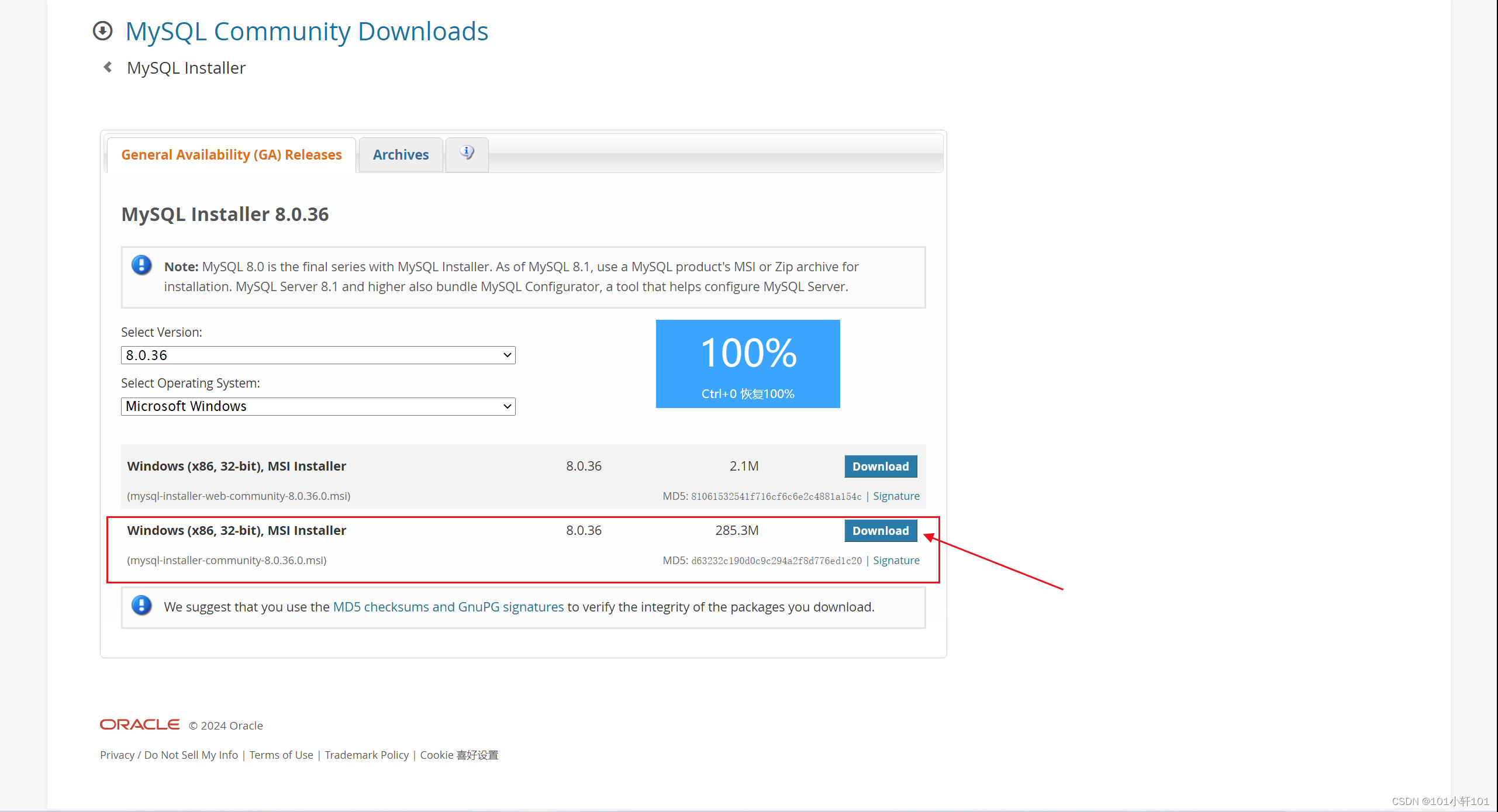MySQL下载地址(Windows版):https://dev.mysql.com/downloads/installer/