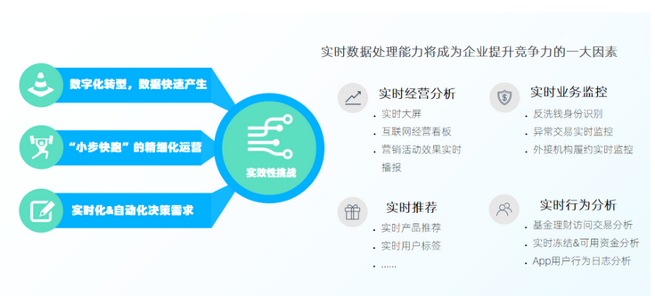 面对数字化转型下的数据快速产生、“小步快跑”的精细化运营及实时化和自动化的决策需求,如何提高实时数据处理能力将成为企业提升竞争力的一大因素。