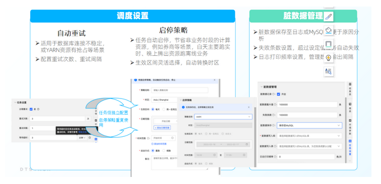 调试、SQL校验、提交检查、自动启停、批量连接现存任务等丰富功能
