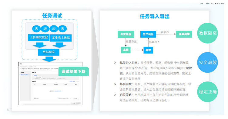 上线,发布上线包括任务调试和任务导入导出两个方面。