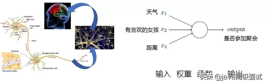 这个神经元有输入,有输出,输入和输出之间通过一个公式来表示,输入根据告急水平不同(权重),影响着输出。